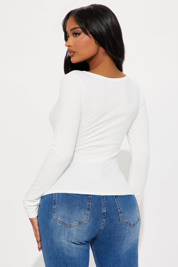 Liora Cut Out Ribbed Long Sleeve Top - Ivory