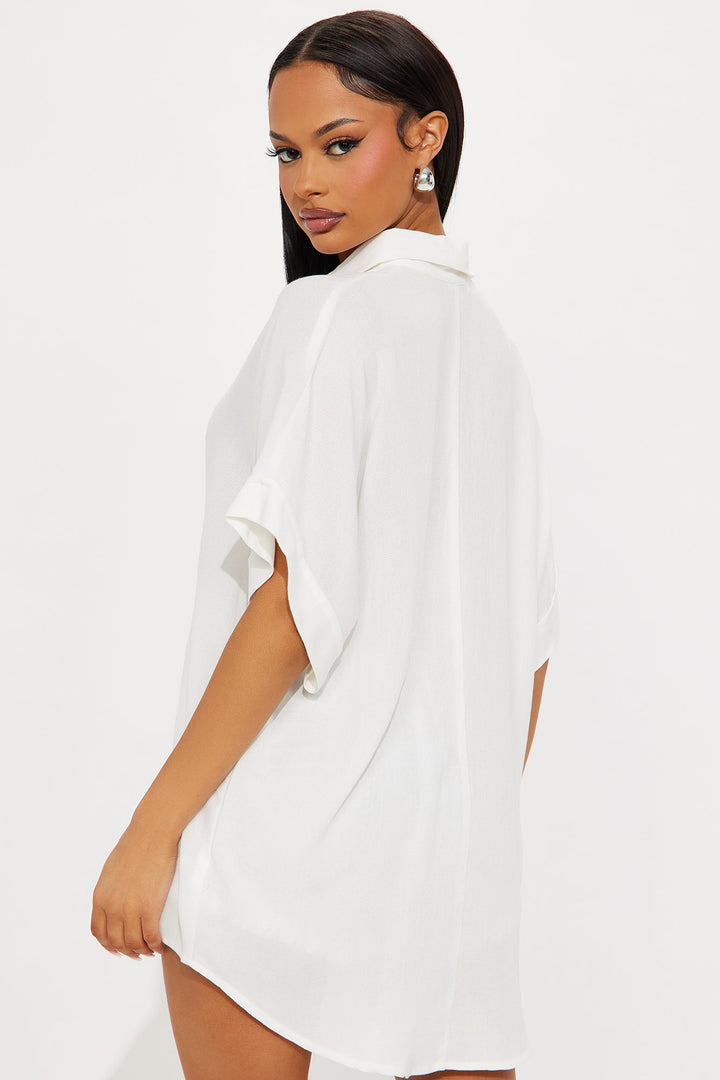Available In Off White And Olive. | Oversized Polo Shirt | Non Stretch | Partial Button Front | Short Sleeve | Cuff Detail | Self : 85% Rayon 15% Polyester | Imported
