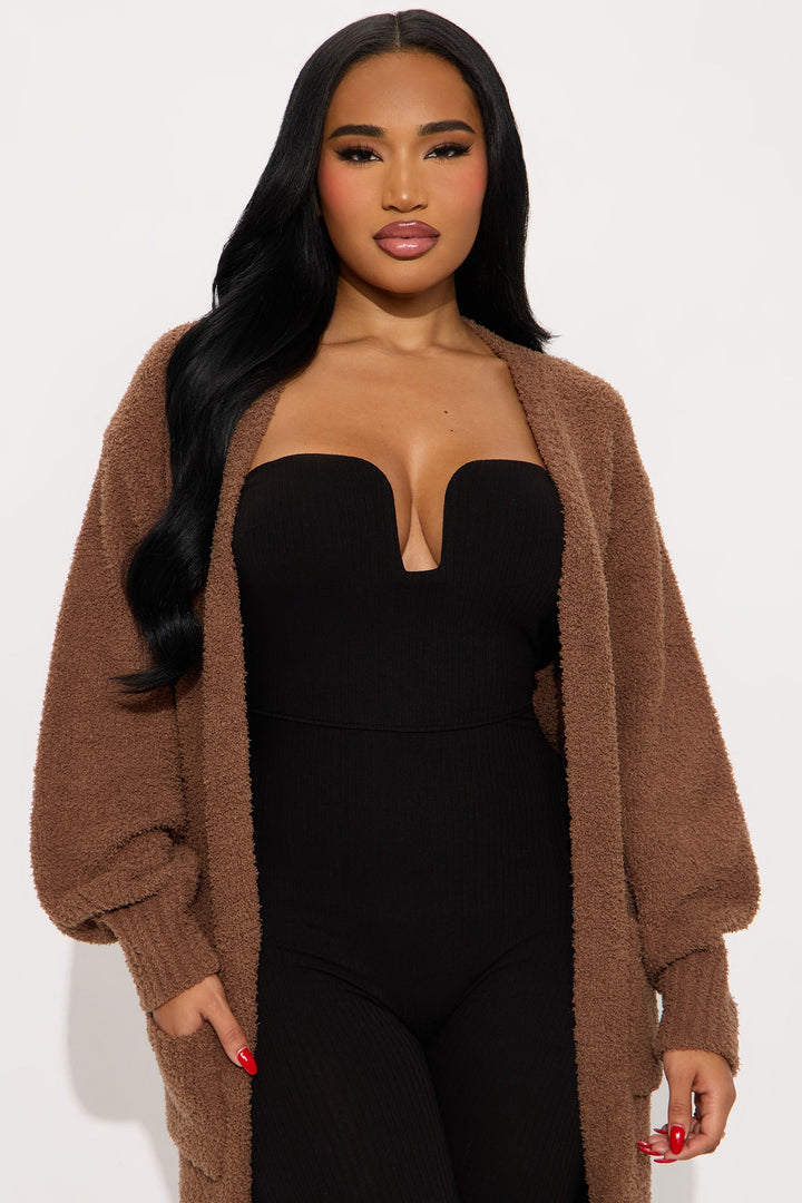 Available In Black, Mocha, Pink And Taupe. | Fuzzy Long Cardigan | 2 Pockets | 100% Polyester | Imported