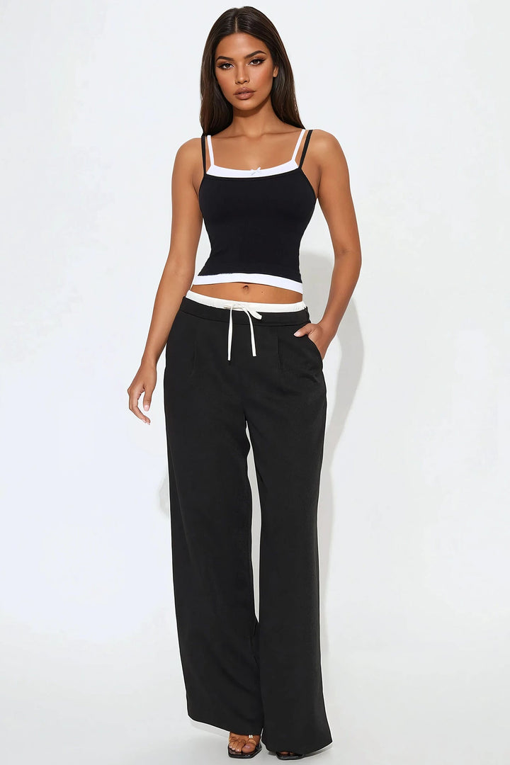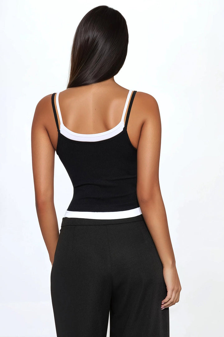 Available In Black, Green And White. | Ribbed Cami Top | Stretch | Colorblock | Bow Deetail | Cropped | Self: 92% Nylon 8% Spandex | Imported