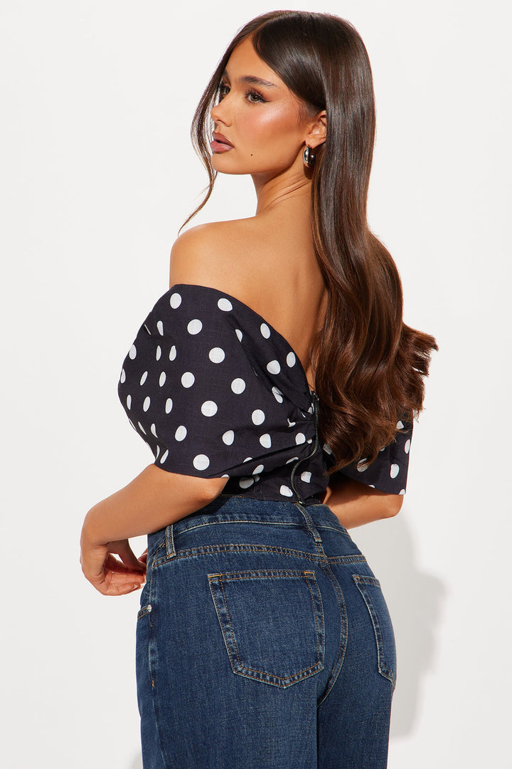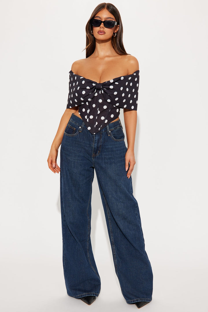 Lorelai Polka Dot Bow Corset Top - Black/White