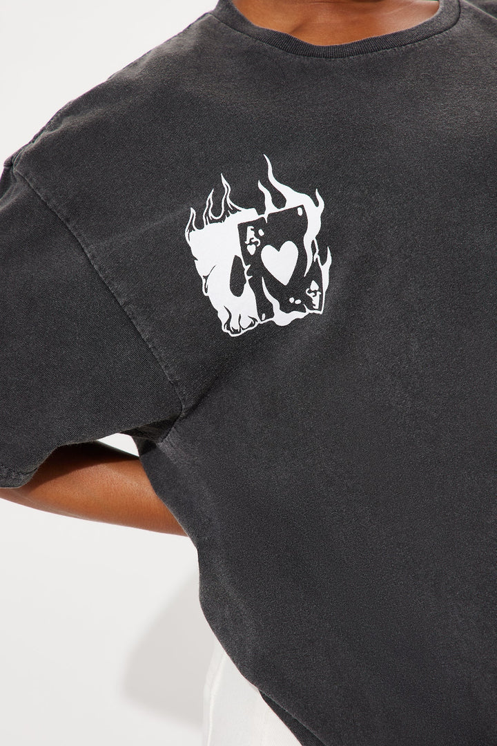 Available In Black Wash. | T-Shirt | Crew Neck | Short Sleeve | Stretch | Front And Back Screen | Disclaimer: Due To The Wash And Screen Printing Process A Difference In Saturation May Occur. Each Garment Is Unique. | 100% Cotton | Imported