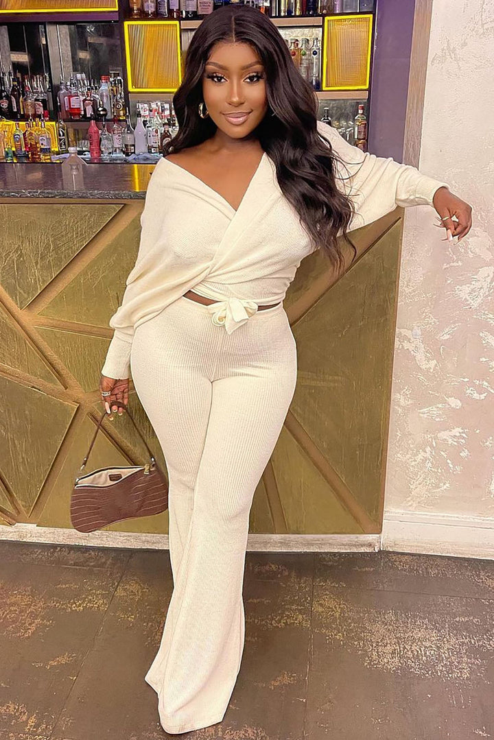 Available In Cream. | Cropped Wrap Sweater | Long Sleeve | Tie Front | Stretch | 50% Viscose 30% Polyester 20% Nylon | Imported