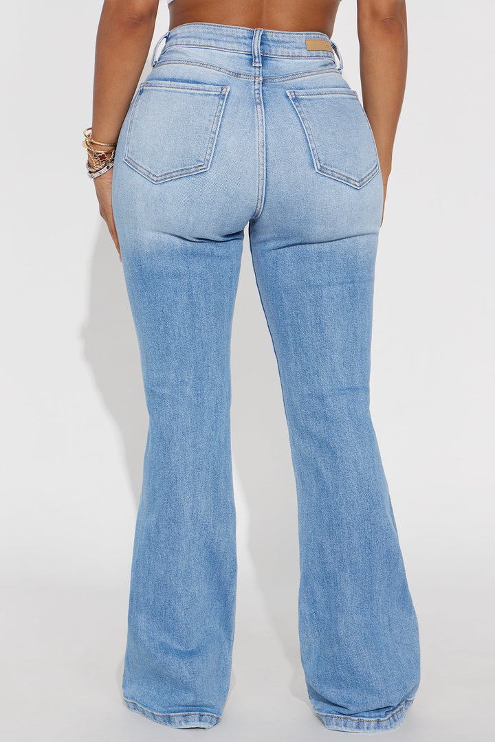 Available In Light Wash. | Flare Jean | 5 Pocket | Ripped | 11" High Rise | 33" Inseam | Medium Stretch | Disclaimer: Due To The Specialized Distressing & Wash Process, Each Garment Is Unique | 93% Cotton 5% Polyester 2% Spandex | Imported