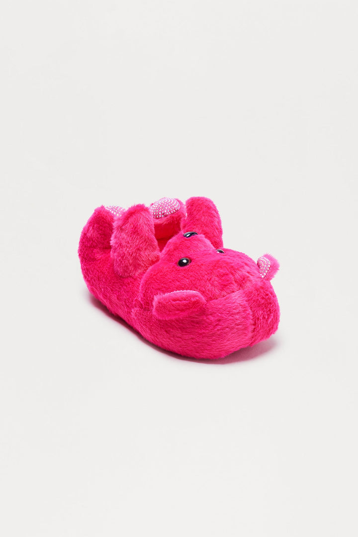 Lovey Rhinestone Bear Slippers - Fuchsia