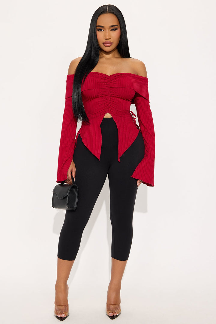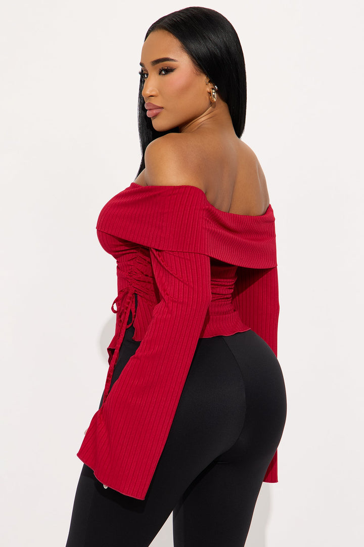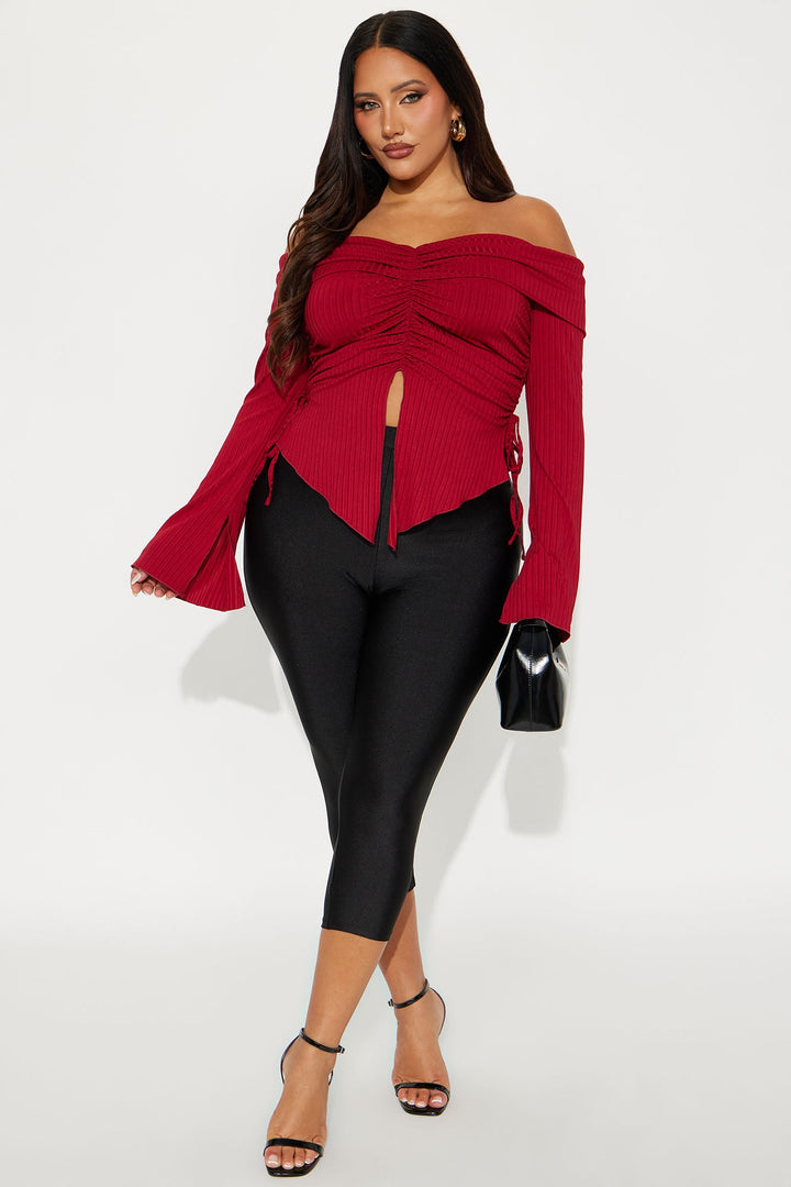Available In Brown, DarkRed And Sand. | Knit Top | Off Shoulder | Long Sleeve | Ribbed | Stretch | Self : 93% Polyester 7% Spandex | Imported