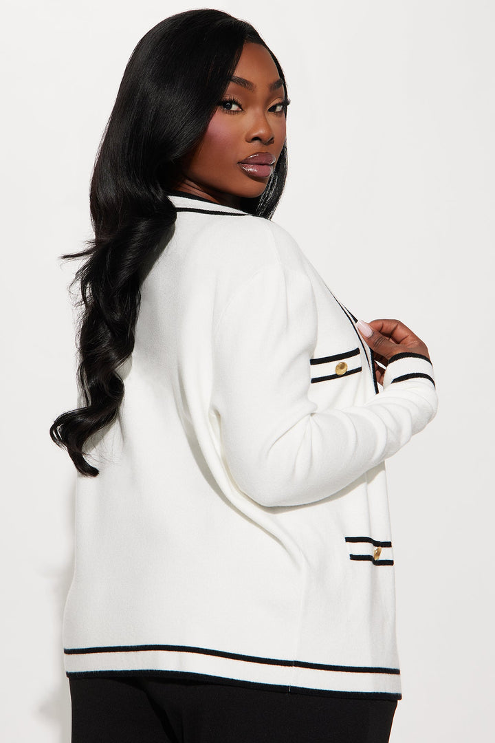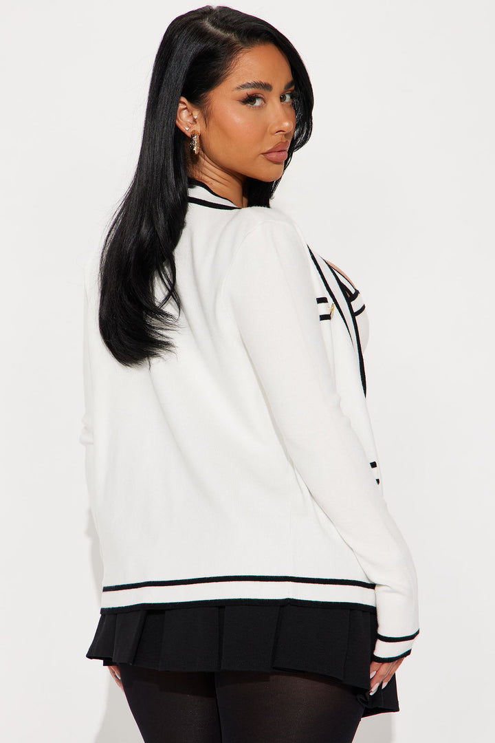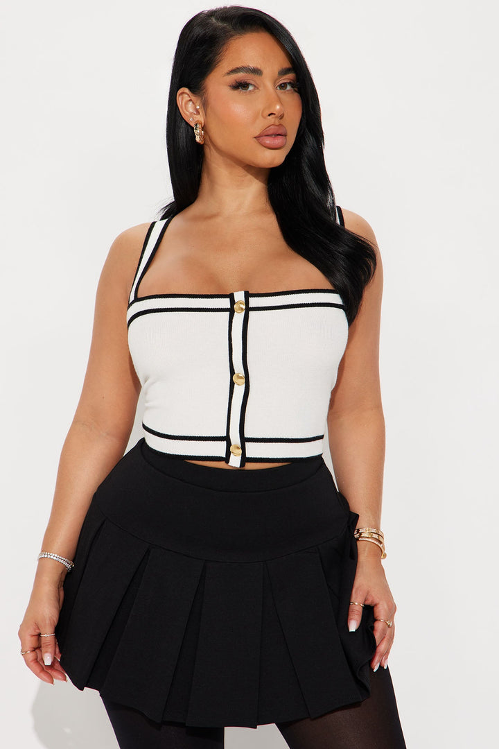 Available In Black/White, Pink/combo And White/Black. | Sweater Set | Cardigan Sweater | Long Sleeve | V Neck | Button Down | Sweater Tank | Sleeveless | Square Neck | Cropped | Button Details | Contrast Trim | Ribbed | 50% Rayon , 30% Polyester , 20% Nylon
