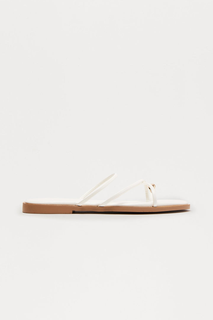 Available In Black, Red And White. | Flat Sandals | Hardware Toe Ring Sandals | Round Toe | Flat Heel | Imported
