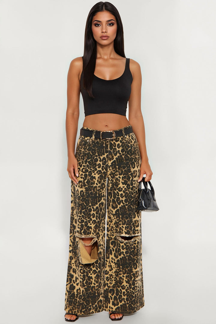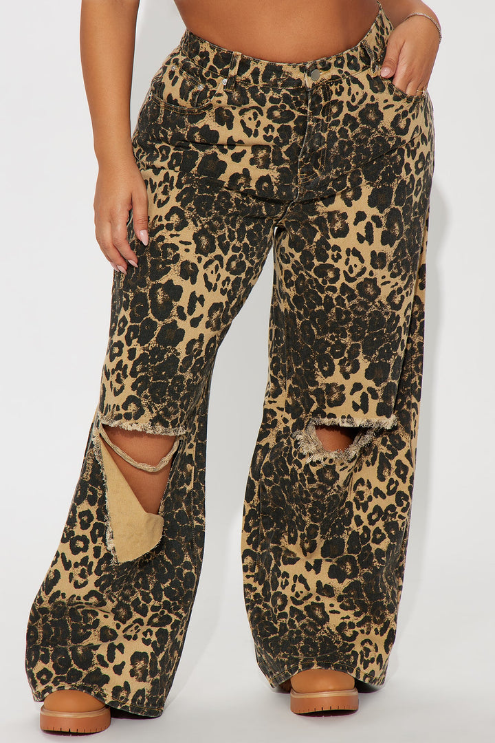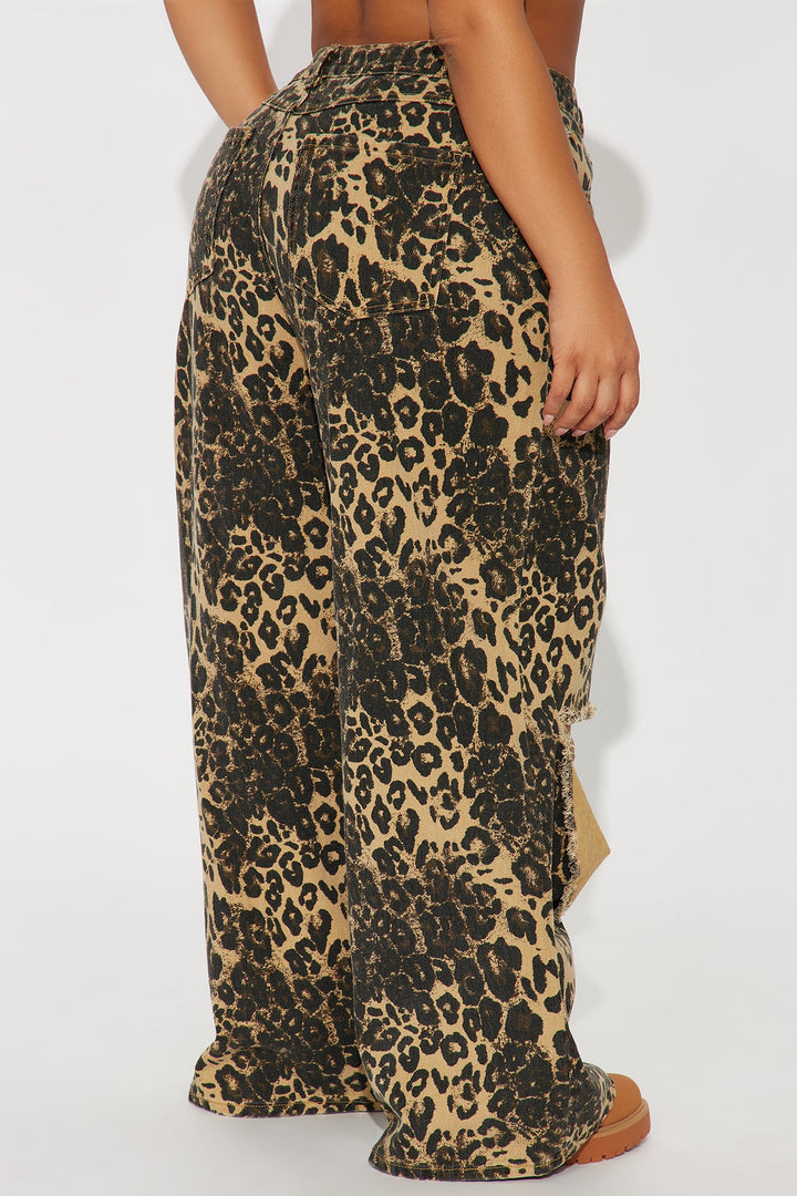 Lure You In Leopard Print Wide Leg Jeans - Olive/combo