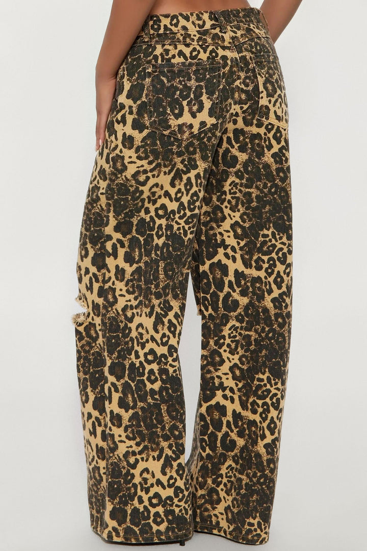 Available In Olive/combo. | Wide Leg Jean | 5 Pocket | Leopard Print | Ripped | 11.75" Rise | 32" Inseam | Non Stretch | Disclaimer Due To The Specialized Wash & Print Process, Each Garment Is Unique. | 100% Cotton | Imported