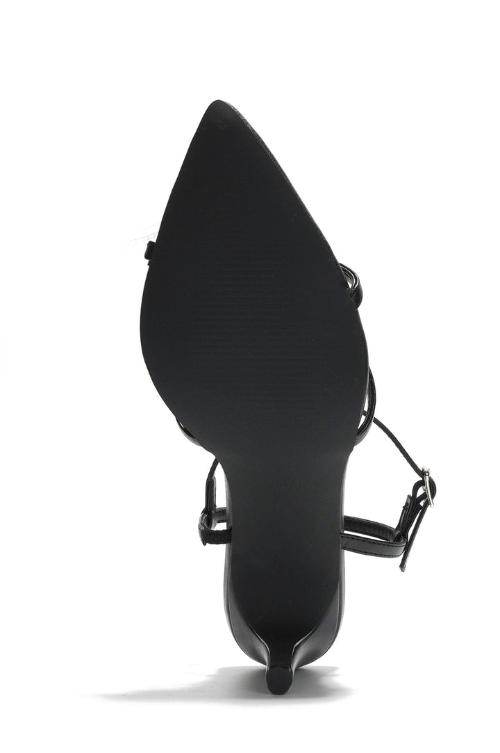LYNDSAY - BLACK - HEELS by CAPE ROBBIN Height: 3.5-inch Strappy PU leather insole with memory foam cushioning for added comfort Pointed toe The Lyndsay heeled sandals are available in snake print, black, or playful multi-color. Featuring an elegant strappy design for a chic look, these sandals are ideal for both casual and dressy occasions. They effortlessly complement dresses, skirts, and tailored pants. Whether you're heading to a beach party, a brunch with friends, or a night out, these sandals will ensure you stand out with every step.