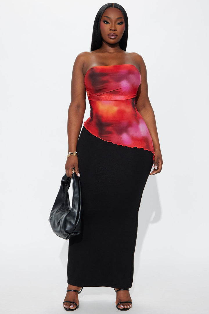 Available In Red/combo. | Tube Top | Strapless | Ruched | Asymmetical | Mesh | Stretch | Disclaimer Print Placement May Vary | Self: 95% Polyester 5% Spandex | Lining: 100% Polyester | Imported