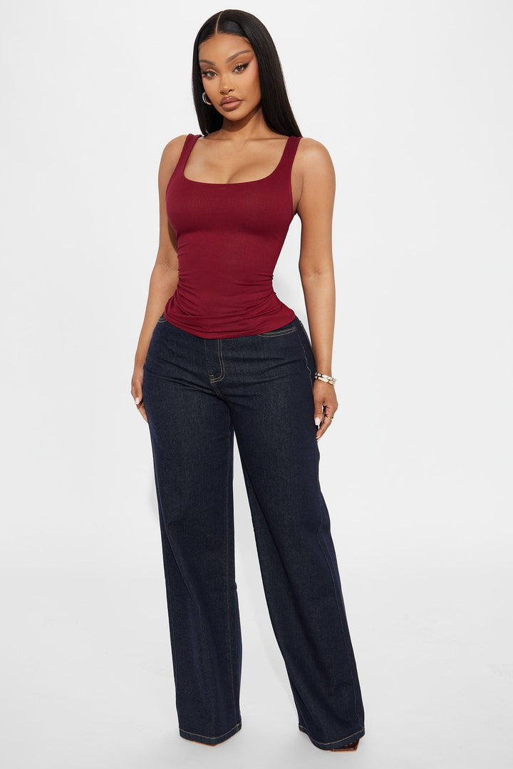 Madison Basic Square Neck Tank Top - Burgundy
