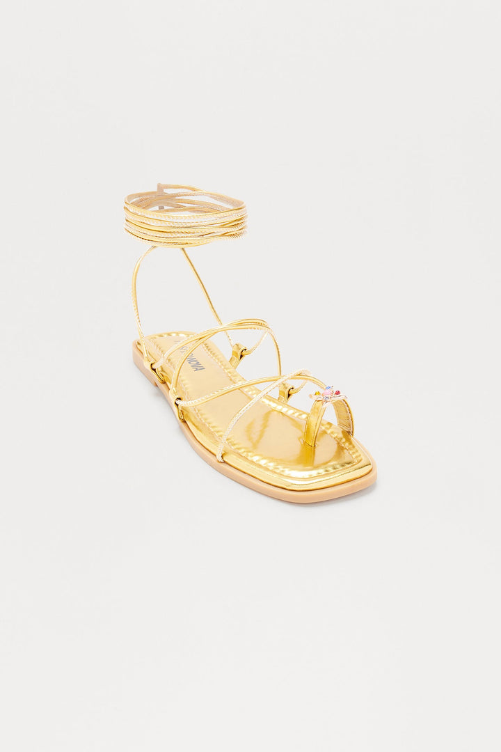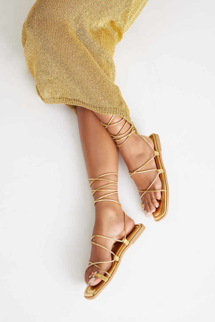 Mai Tai Toe Ring Wrap Up Sandals - Gold