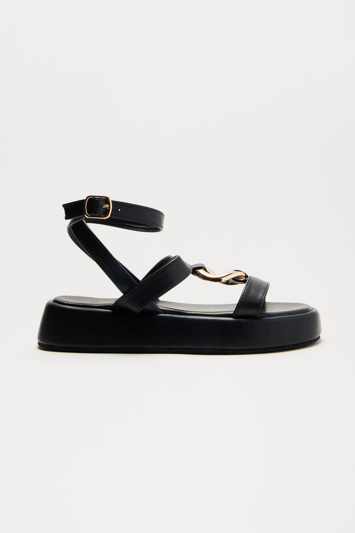 Available In Black And Camel. | Flat Sandals | Hardware Detail | Square Toe | Flat Heel | Imported