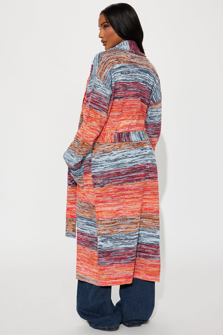 Available In Multi Color. | Cardigan | Color Block Print | Long Sleeve | Collar | Open Front | Belted | Long | Disclaimer: Print Placement May Vary | 100% Acrylic | Imported