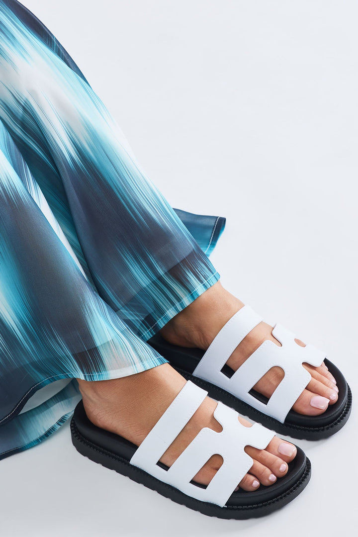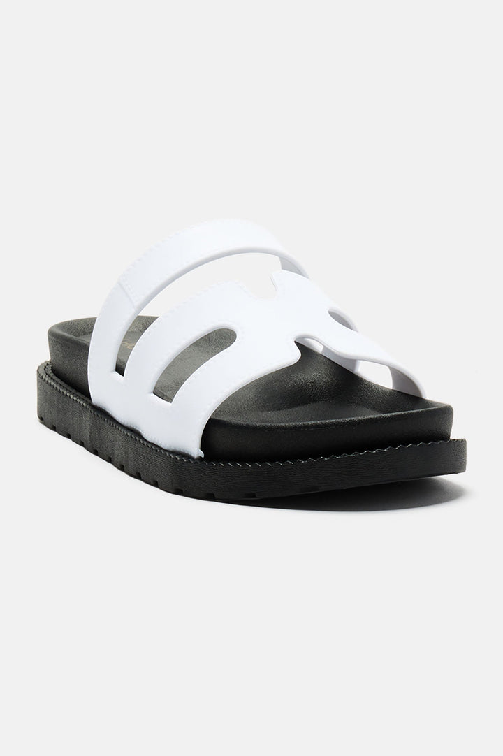 Available In Pink And White. | Casual Slides | Round Toe | Flat Heel | Imported