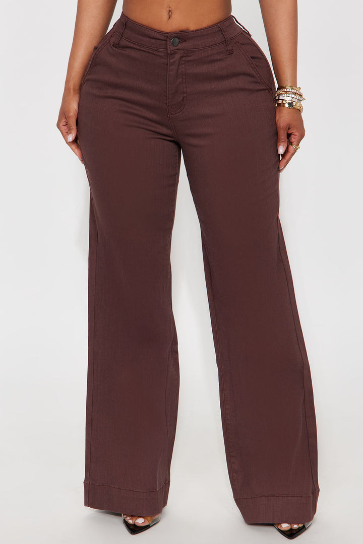 Available In Brown And Burgundy. | Wide Leg Jean | Trouser Pockets | Dart Detail | 33" Inseam | 11" High Rise | Medium Stretch | Disclaimer Due To The Specialized Wash Process, Each Garment Is Unique. | 98% Cotton 2% Spandex | Imported