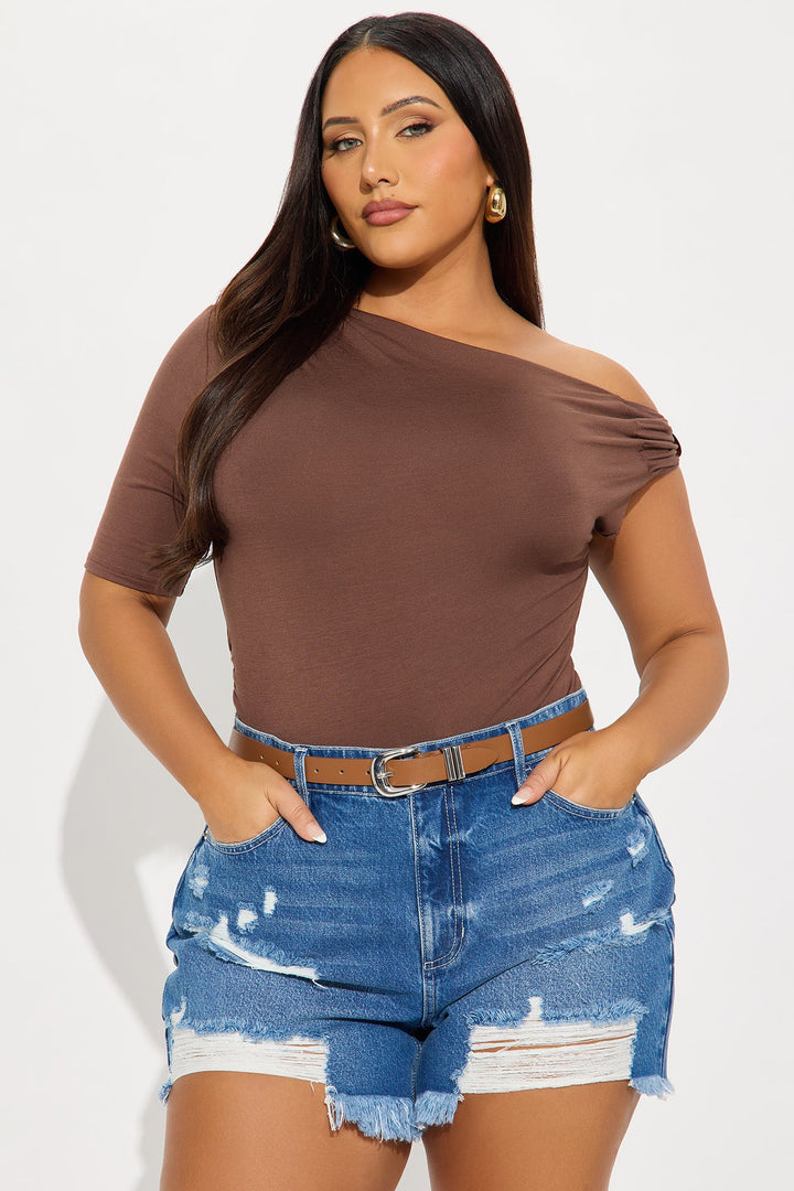 Maris Ruched Off Shoulder Bodysuit - Chocolate