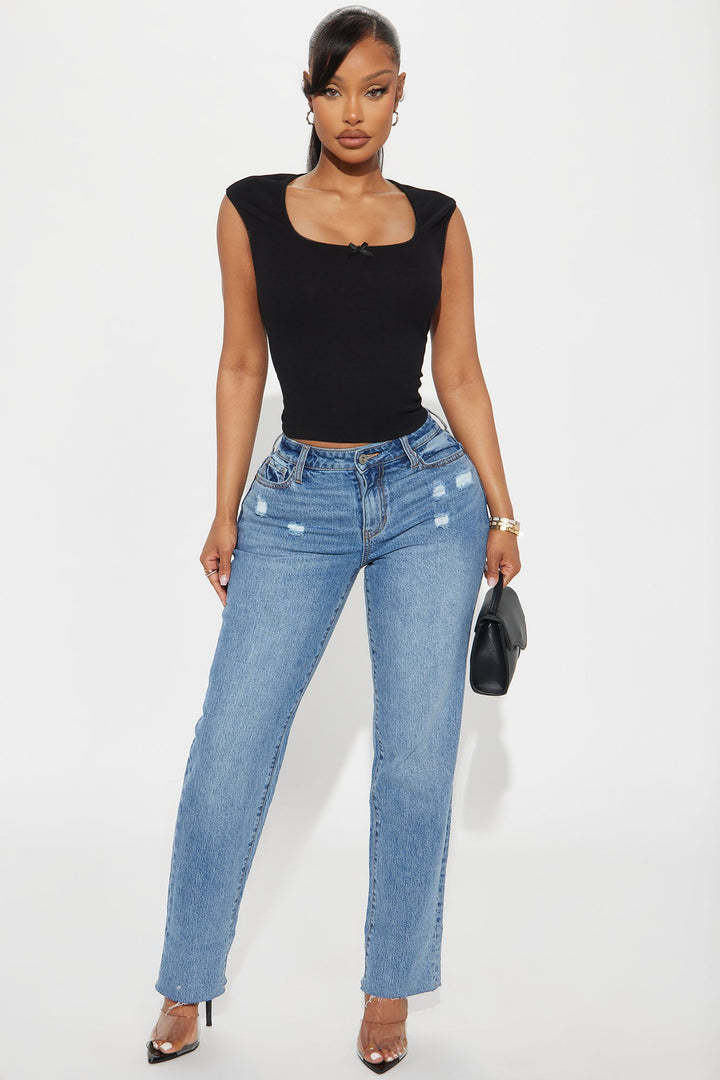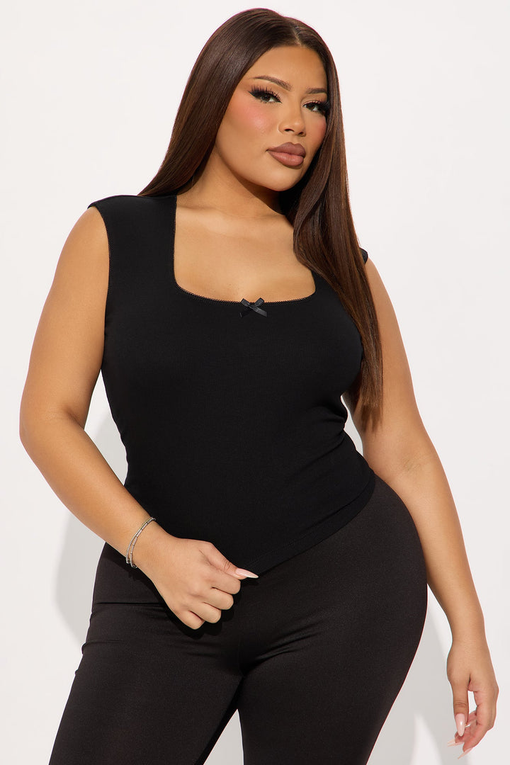 Available In Black And White. | Sleeveless Top | Square Neck | Bow Detail | Cropped | Stretch | 95% Cotton 5% Spandex | Imported