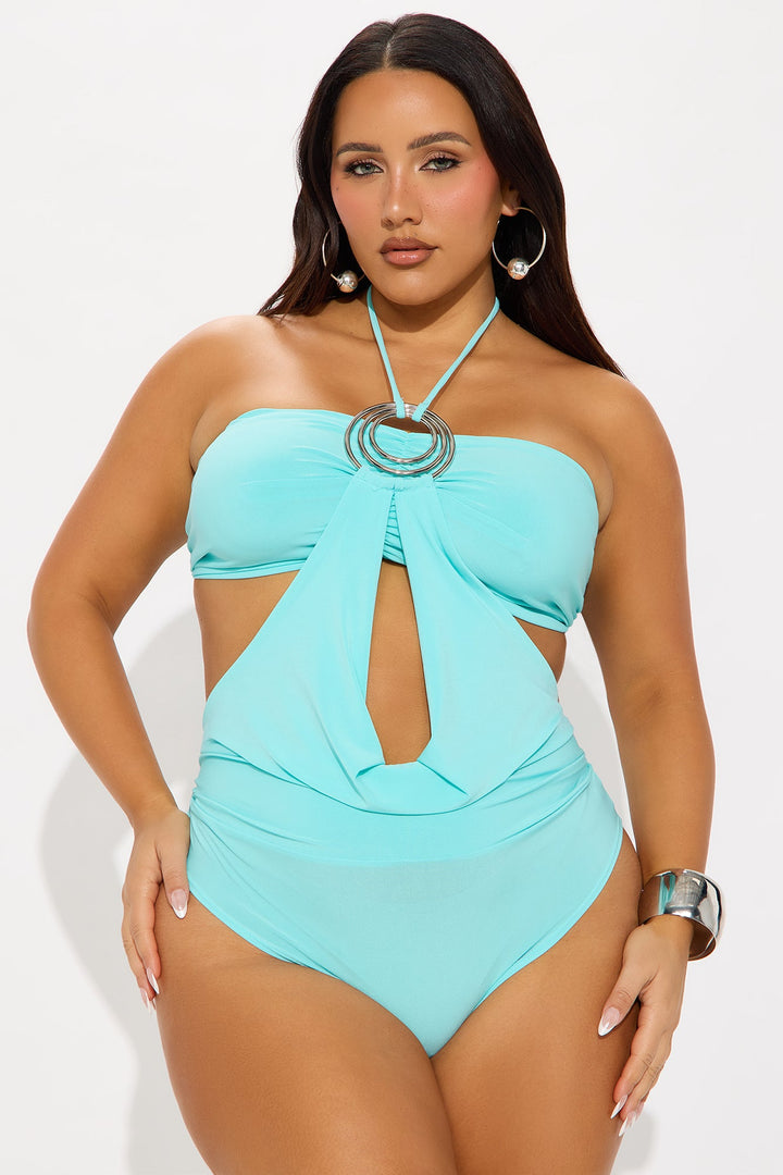 Marley Cut Out Y-Neck Halter Bodysuit - Aqua