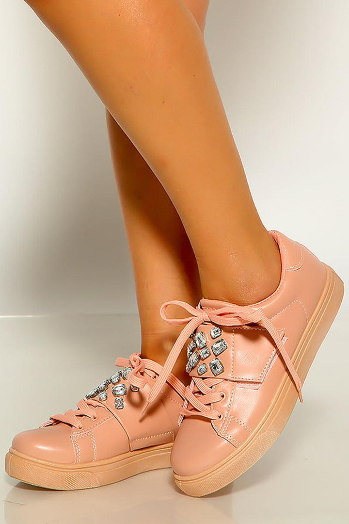 Be stylish and comfy in these super cute sneakers! Featuring; two tone, rhinestones, lace up closure, followed by a cushioned footbed.