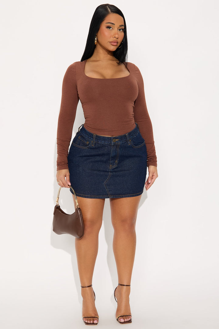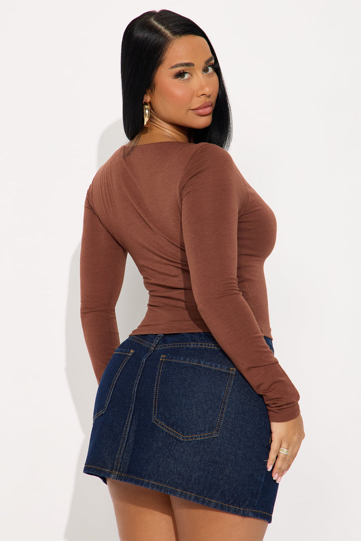Maya Double Lined Long Sleeve Top - Brown