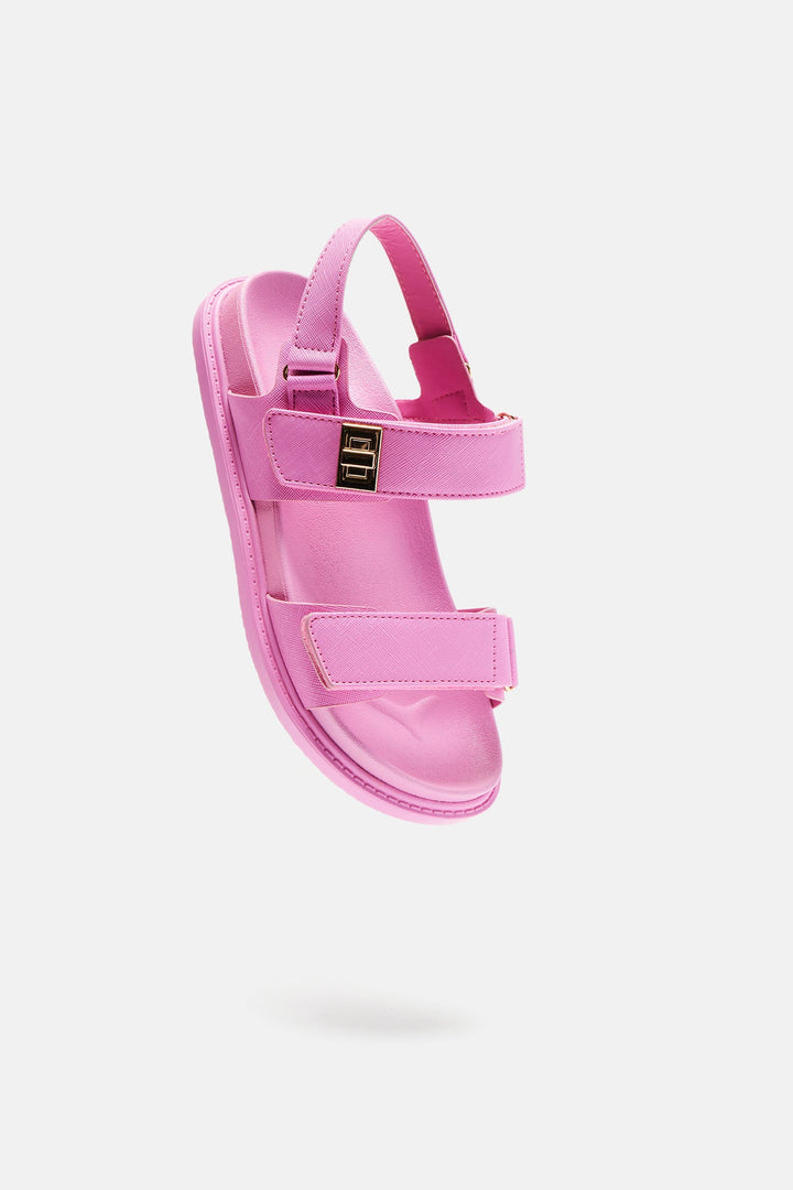 Available In Pink. | Sandals | Round Toe | Hardware Detail | Slingback Heel Strap | Imported