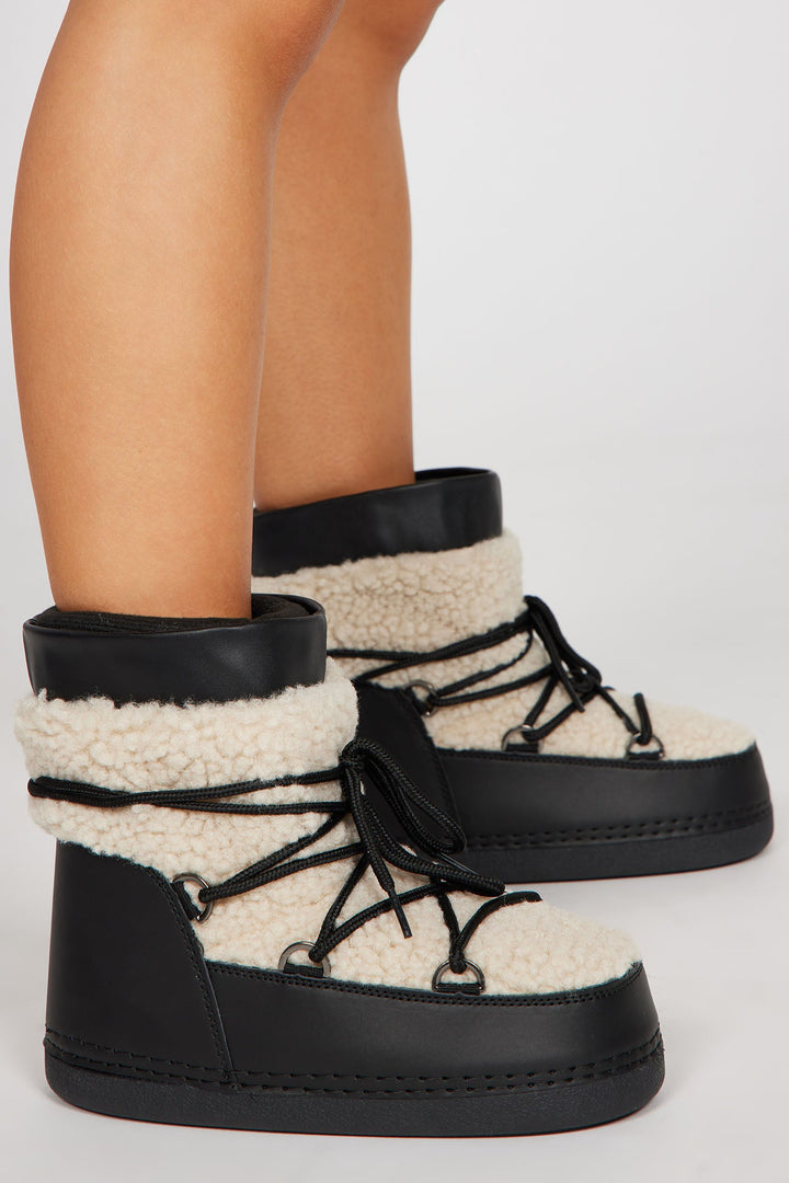 Available In Black, Ivory And Taupe. | Flat Boots | Faux Fur | Round Toe | Flat Heel | Imported