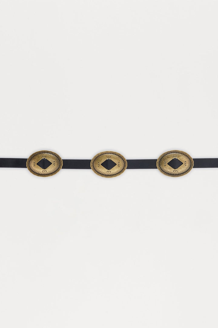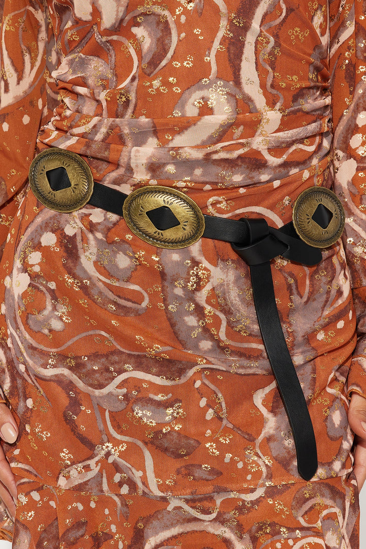Available In Black/Gold And Gold/Brown. | Faux Leather Material | Hardware Detail | Length: 46.5" | Imported