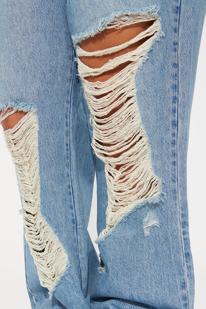 Available In Medium Wash. | Wide Leg Jean | 5 Pocket | Ripped | 11" High Rise | 32" Inseam | Non Stretch | Disclaimer: Due To The Specialized Wash & Distressing Process, Each Garment Is Unique. | 100% Cotton | Imported