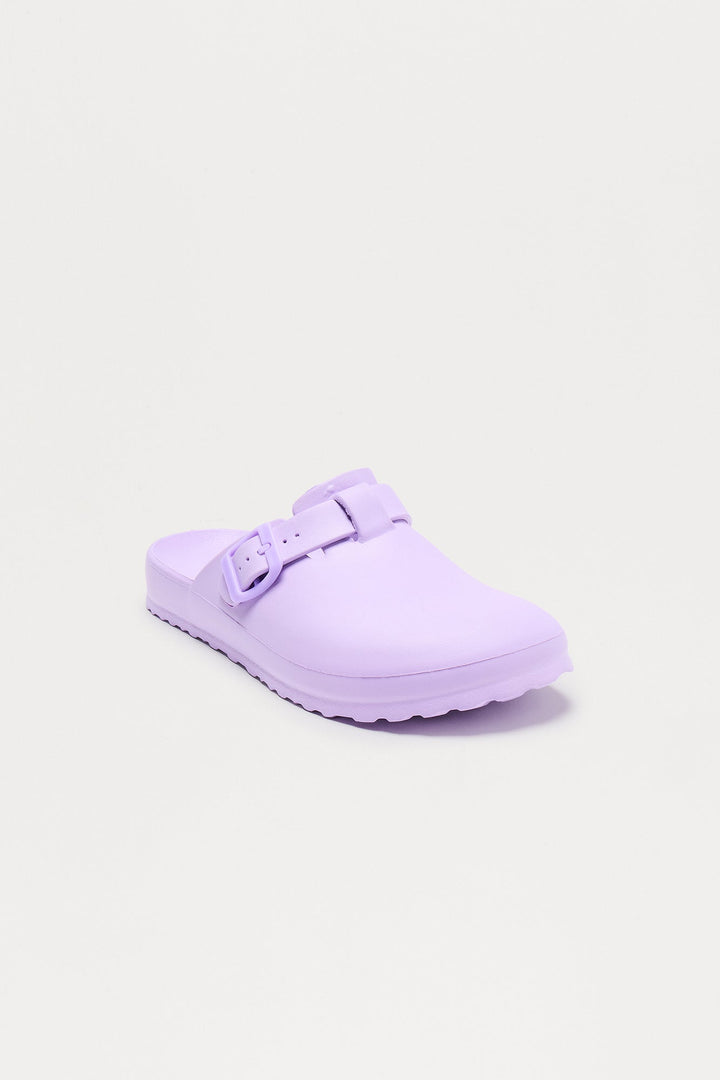 Available In Black, Blue, Mint, Pink, Purple And White. | Casual Slides | Buckle Detail | Round Toe | Flat Heel | Imported