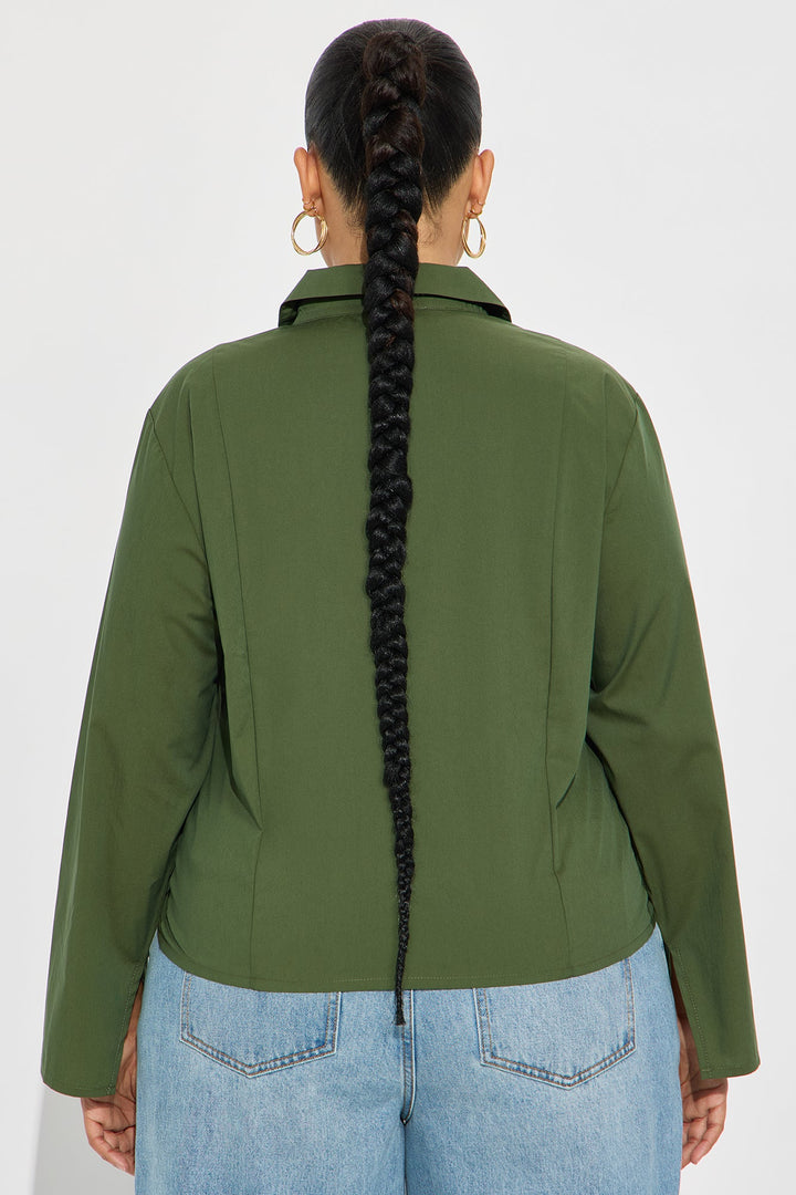 Mellowed Out Front Zip Poplin Shirt - Dark Olive