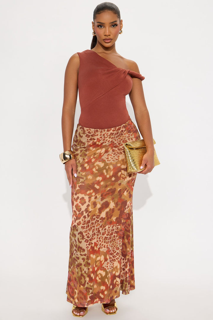 Midnight Views Twist Off Shoulder Bodysuit - Camel