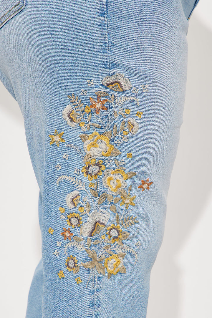 Midsummer Embroidered Capri Skinny Jeans - Light Blue Wash