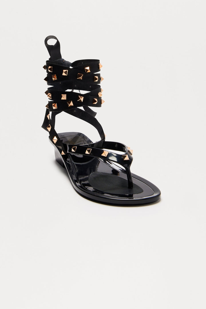 Available In Black And White. | Wrap Up Flat Sandals | Studded Detail | Round Toe | Flat Heel | Imported