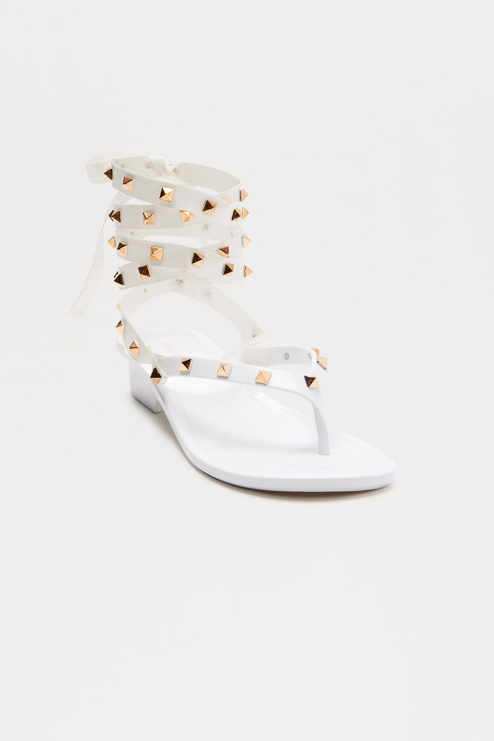 Available In Black And White. | Wrap Up Flat Sandals | Studded Detail | Round Toe | Flat Heel | Imported