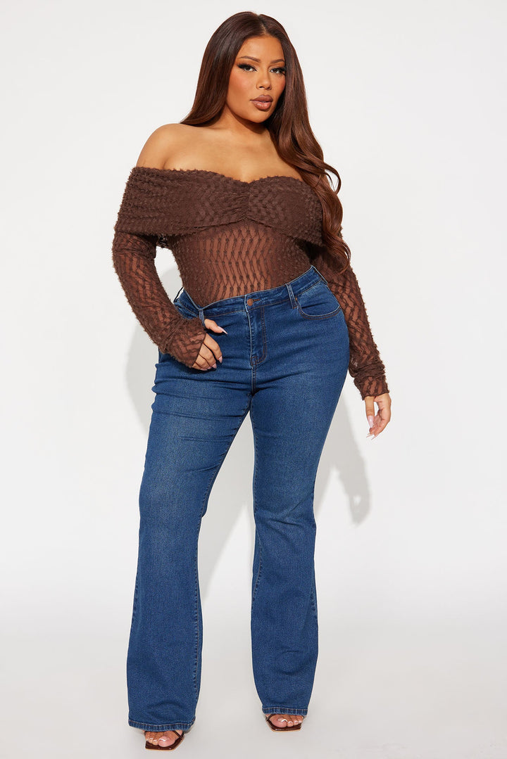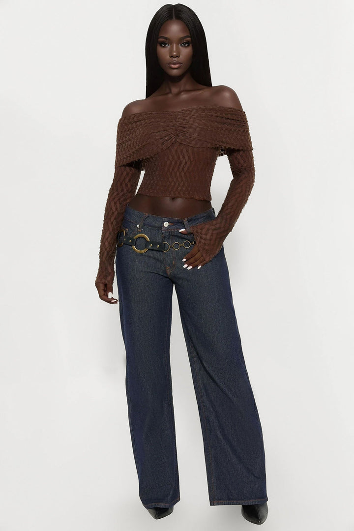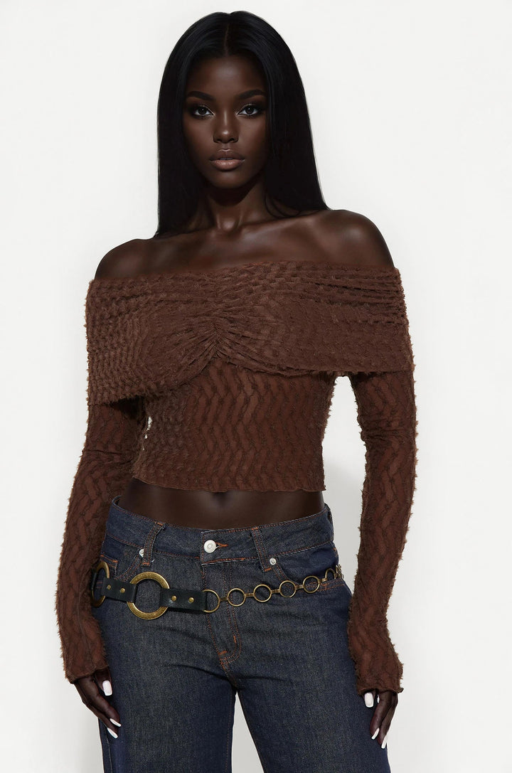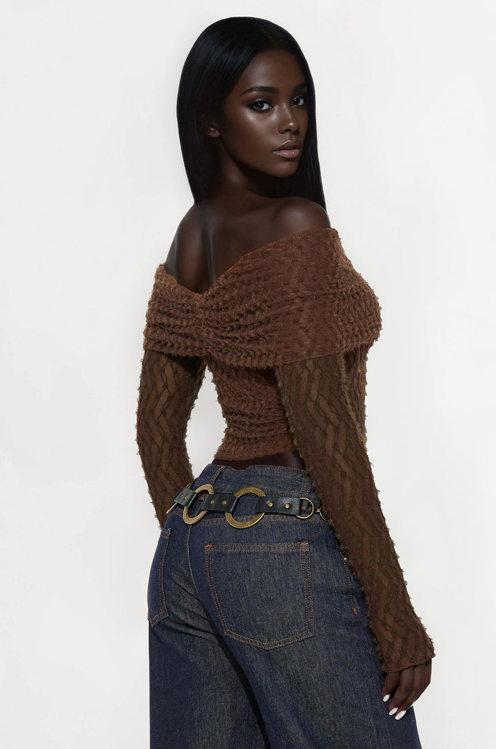 Minerva Off Shoulder Long Sleeve Top - Chocolate