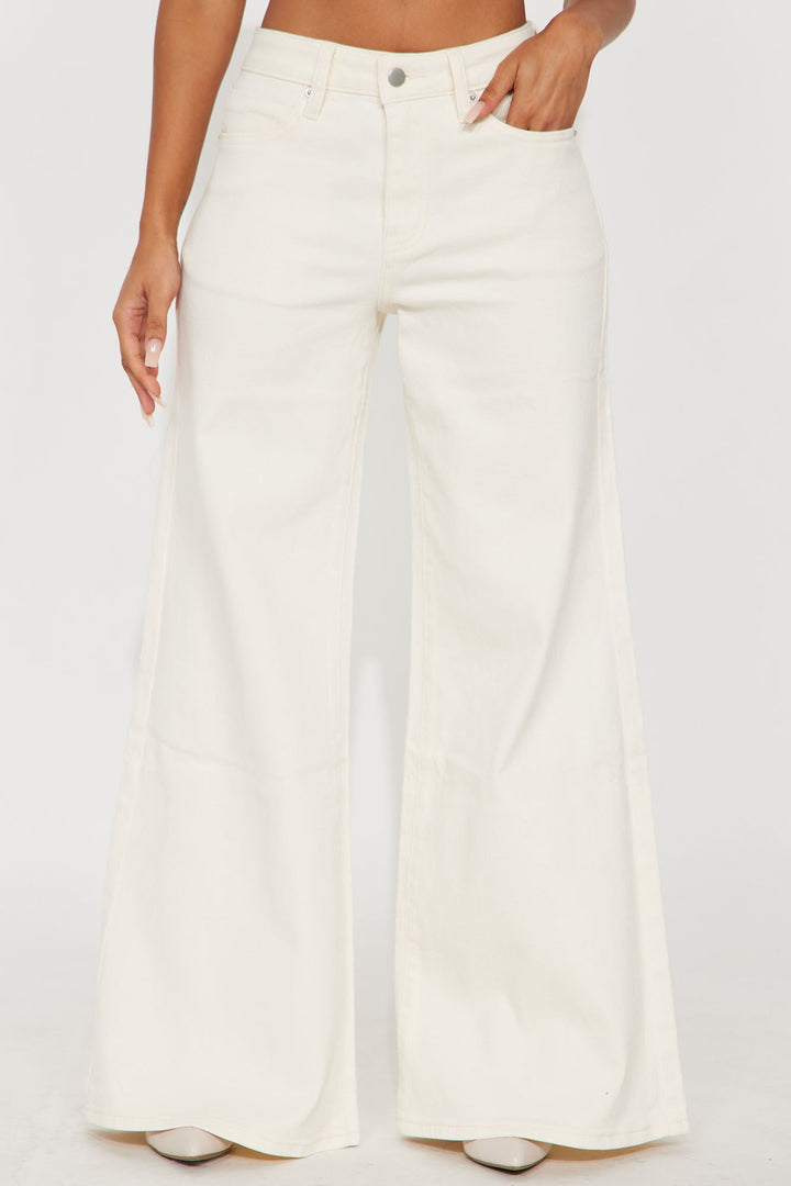 Available In Cream. | Wide Leg Jean | 5 Pocket | 10.5" Rise | 31.75" Inseam | Non Stretch | 100% Cotton | Imported