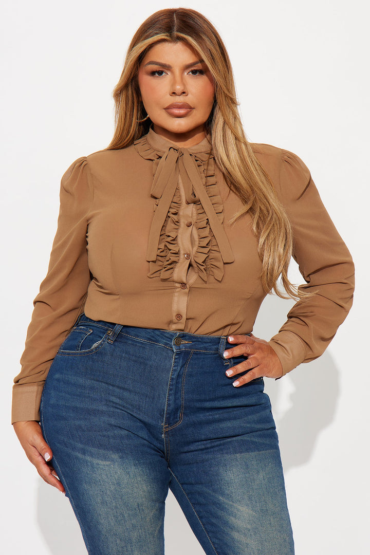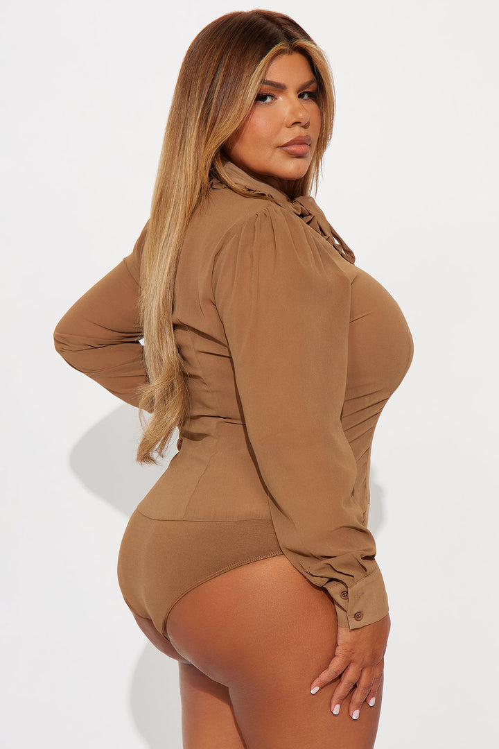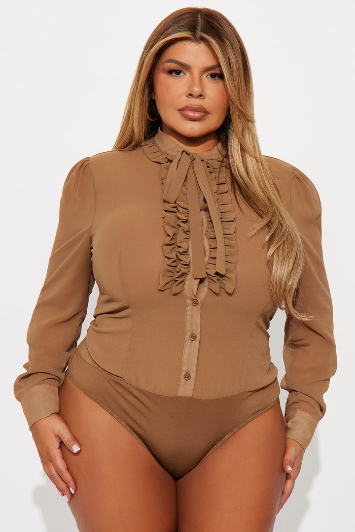 Available In Black, Blush And Mocha. | Chiffon Bodysuit | Non Stretch | Button Front | Cheeky Bottom | Snap Button Closure | Final Sale | Shell 1- 100% Polyester | Shell 2- 100% Polyester | Imported