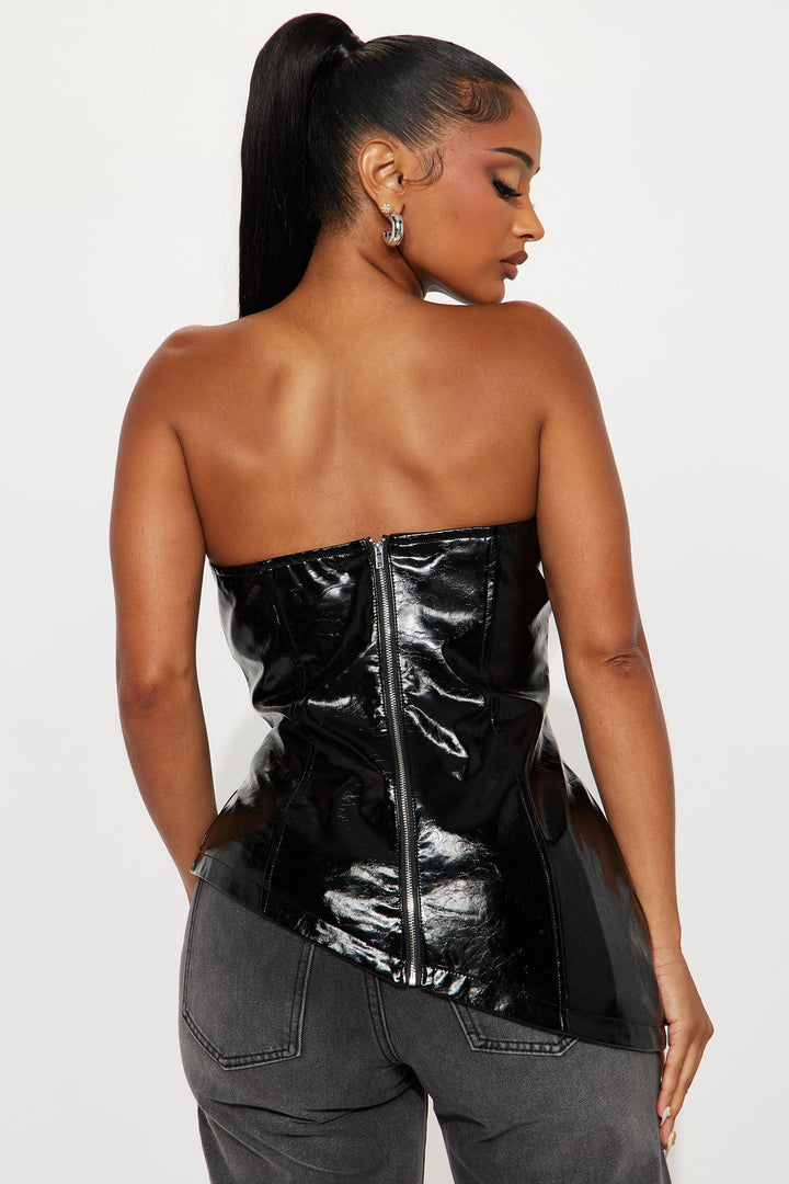 Miss Me Yet Faux Patent Leather Top - Black