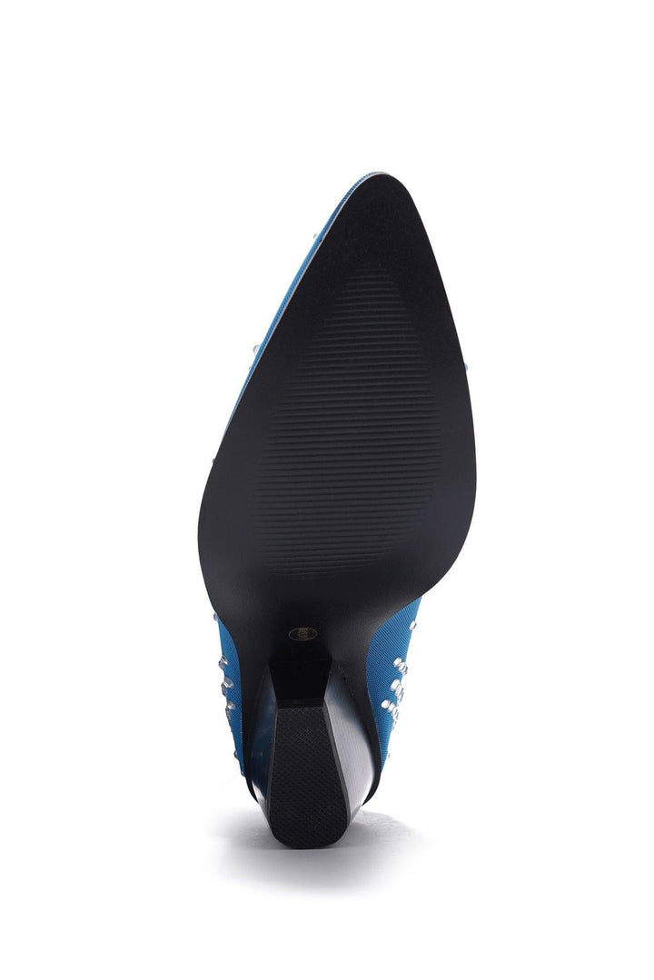 MODIM - DENIM - BOOTS by CAPE ROBBIN closed pointy toe lightly cushioned footbed denim finish mesh finish gems and rhinestone embellished rubber outsole true to size These Modim thigh-high,Western-inspired boots are the perfect way to upgrade your style! Features top-grade materials,these shoes will make a bold fashion statement.