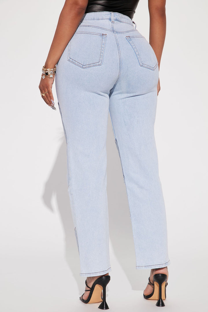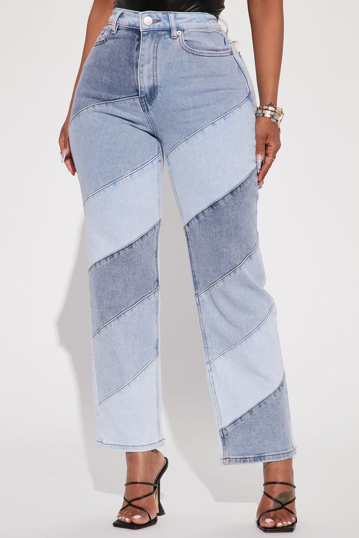 Available In Medium Blue Wash. | Straight Leg Jean | Low Stretch | 5 Pocket | Two Tone Patchwork | 11" High Rise | 27.5" Inseam | Disclaimer: Due To The Specialized Wash Process, Each Garment Is Unique. | 99% Cotton 1% Spandex | Imported