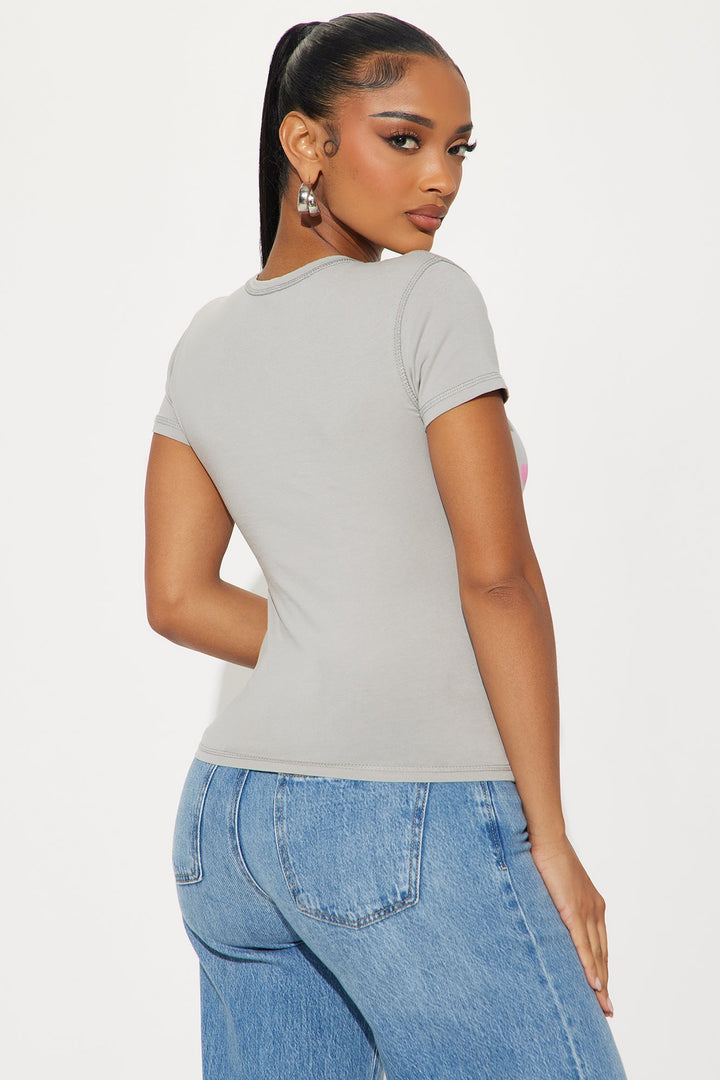 Available In Charcoal. | Crew Neck | Short Sleeve | Front Screen | Stretch | 95% Cotton 5% Elastane | Imported