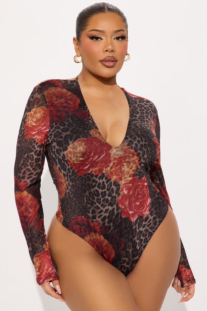 Moody Mesh Long Sleeve Bodysuit - Leopard