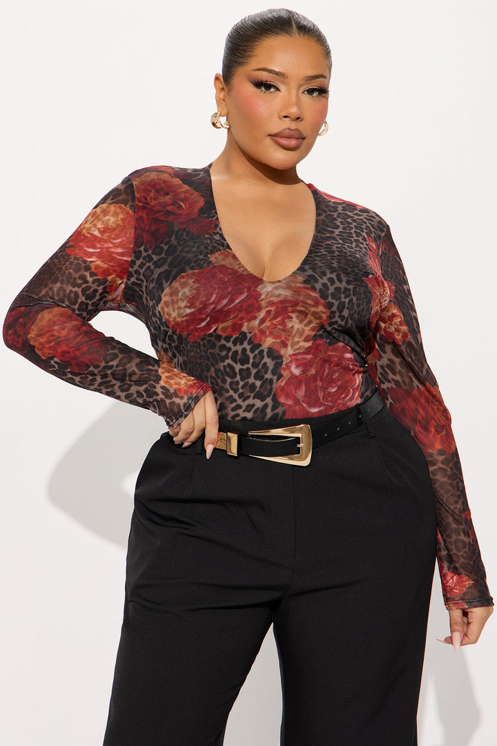 Moody Mesh Long Sleeve Bodysuit - Leopard