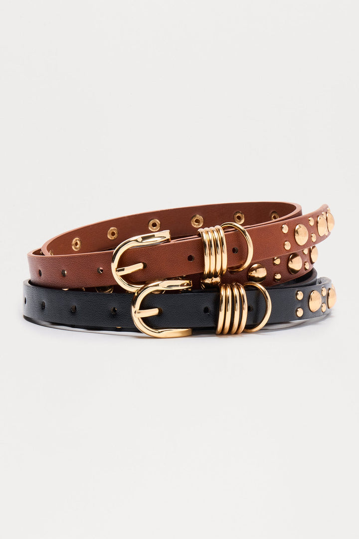 More Than Ordinary 2 Piece Belt Set - Black/Brown