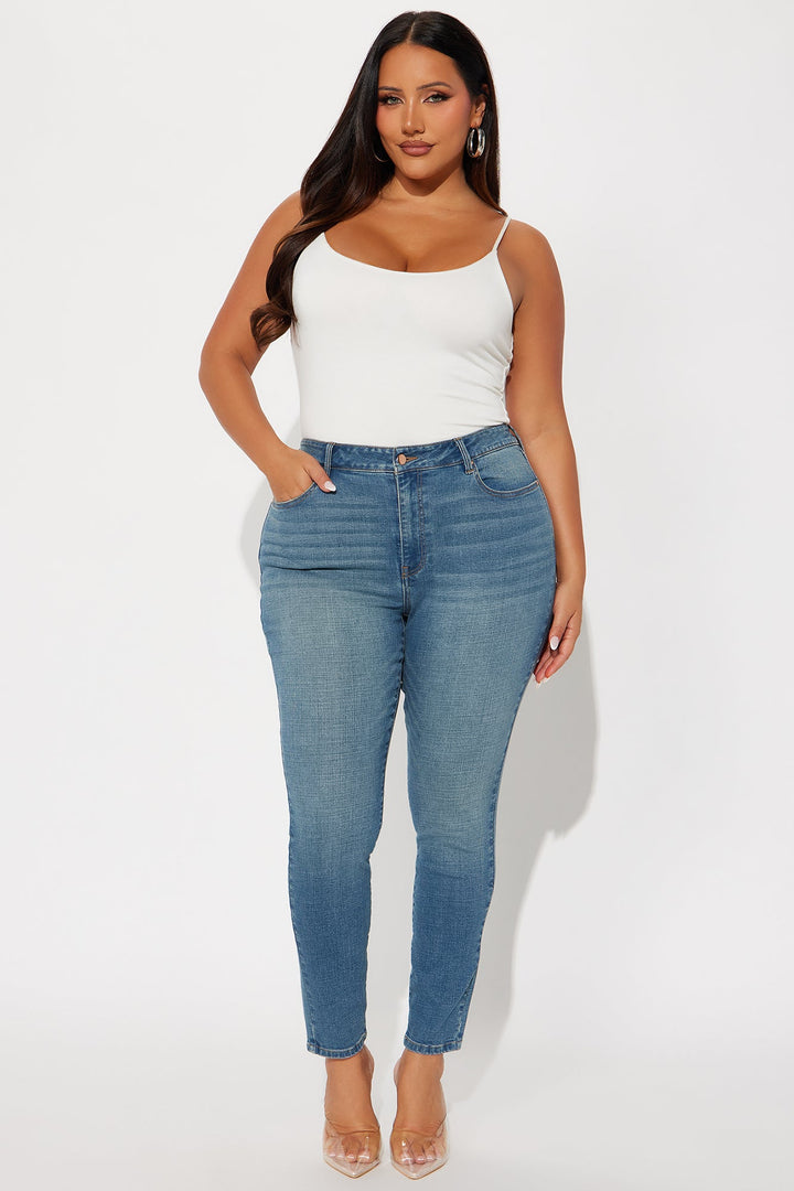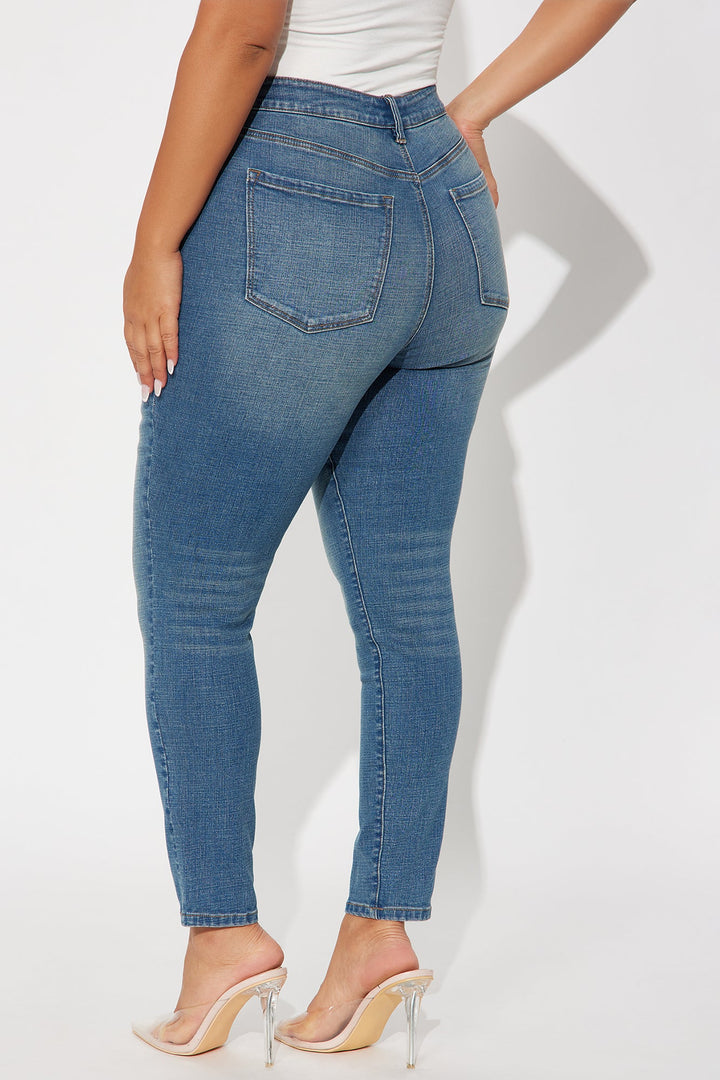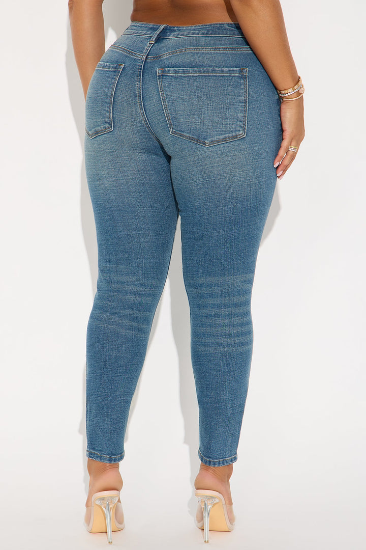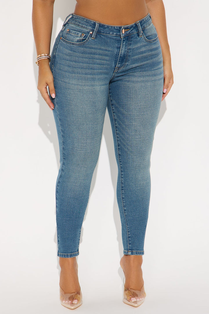 Available In Dark Wash And Vintage Wash. | Skinny Jean | 5 Pocket | 9.5" Mid Rise | 29" Inseam | Medium Stretch | Disclaimer: Due To The Specialized Wash, Each Garment Is Unique. | 64% Cotton 24% Polyester 10% Rayon 2% Spandex | Imported
