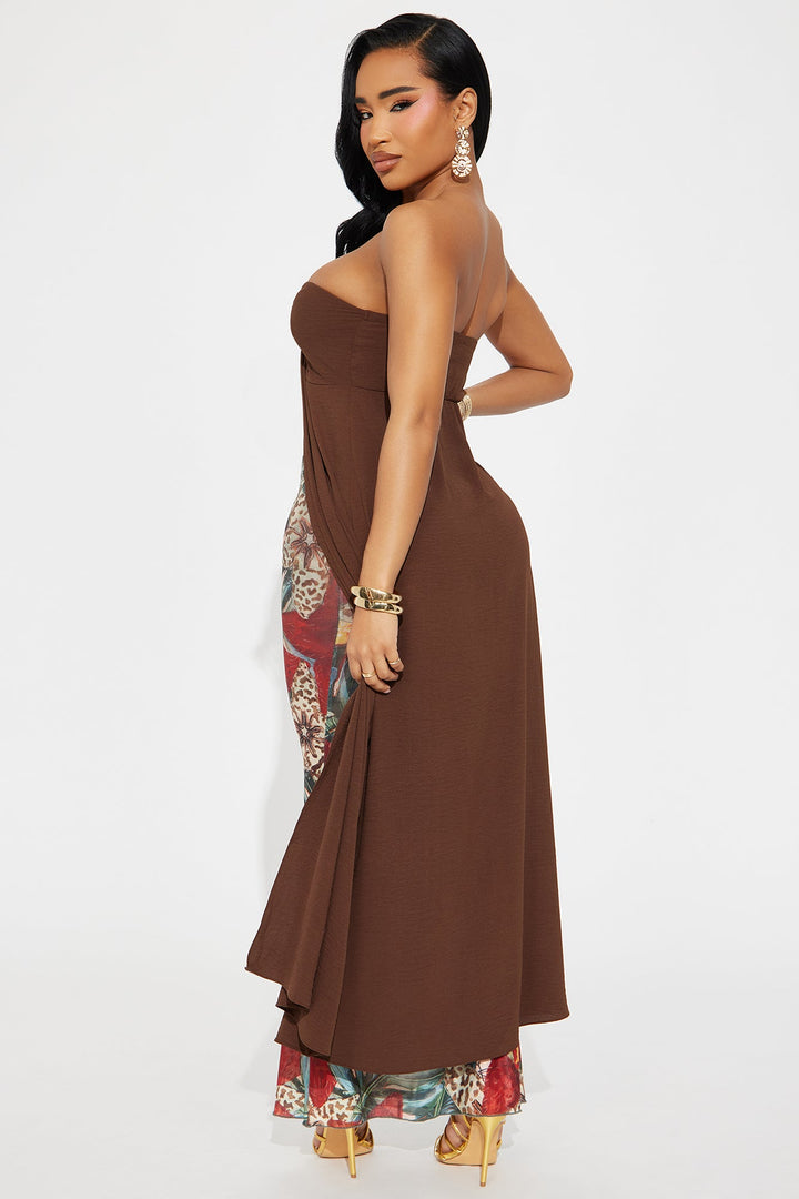 Available In Chocolate And Red. | Strapless Top | Stretch | Hardware | Ruched Bust | Open Front | Long | Self: 100% Polyester | Lining: 100% Polyester | Imported