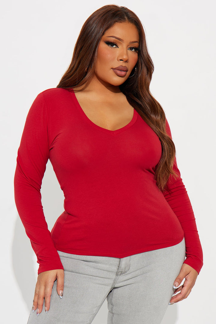Nara Long Sleeve Top - DarkRed